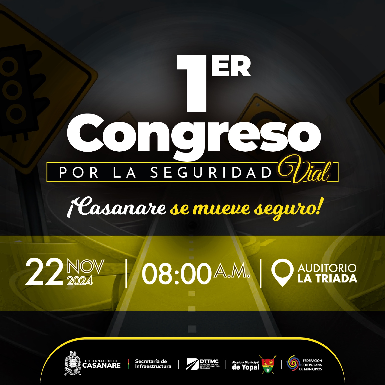Este 22 de noviembre, la Biblioteca Pública Municipal La Triada de Yopal será escenario del 1er Congreso por la Seguridad Vial, un evento clave para reflexionar y construir estrategias que mejoren la movilidad y salven vidas en el departamento. Bajo el lema ‘Casanare se mueve seguro’, el congreso reunirá a autoridades locales, expertos en seguridad vial y representantes nacionales.