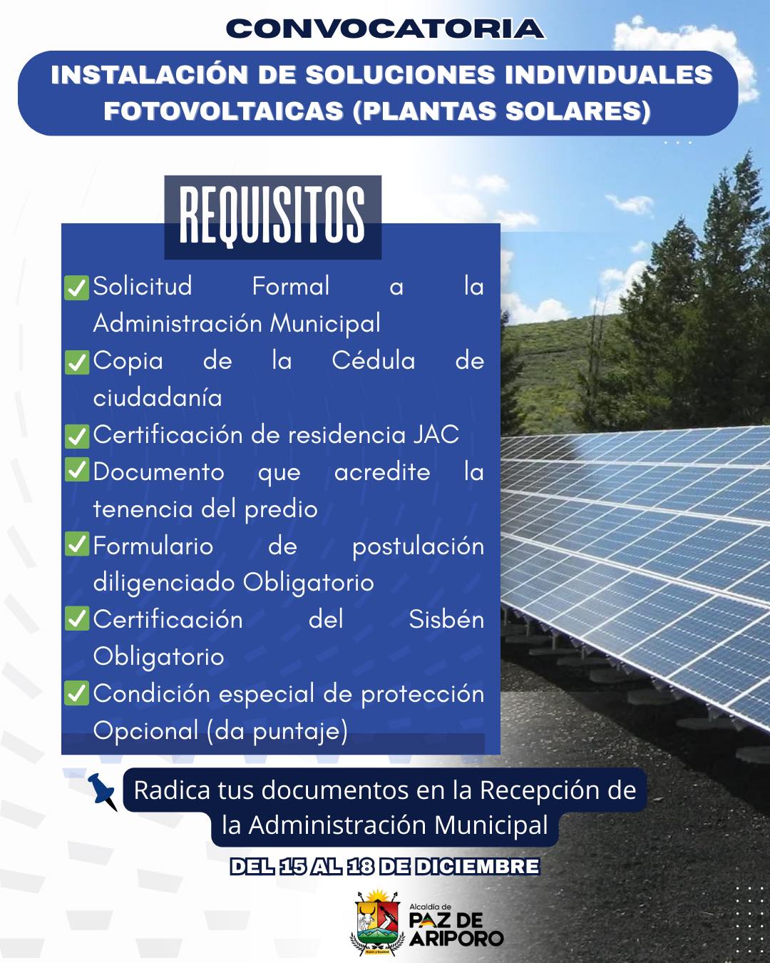 Paz de Ariporo tiene abierta convocatoria para interesados en Instalación de Soluciones Individuales Fotovoltaicas (Plantas Solares)