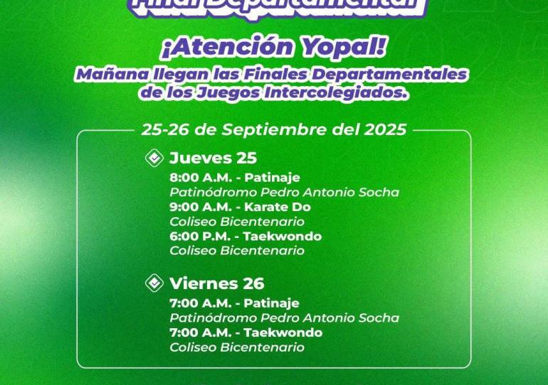 La Gobernación de Casanare, a través del Instituto para la Recreación y el Deporte de Casanare (Indercas), informa a la comunidad educativa, entes deportivos municipales y ciudadanía en general que...