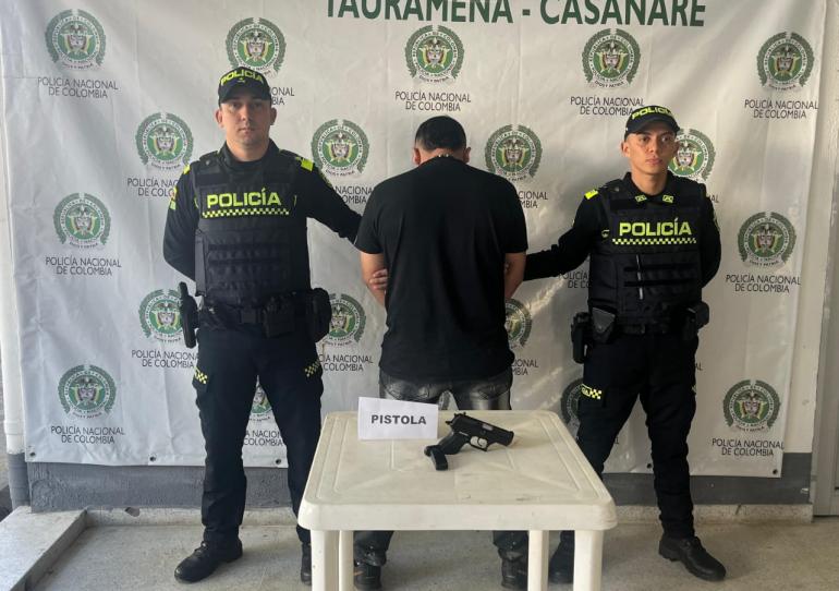 ...Unidades de la Policía Nacional adscritos a la Estación de Tauramena logró la captura en flagrancia de un hombre de 24 años por el delito de fabricación, tráfico, porte o tenencia de armas de fuego...