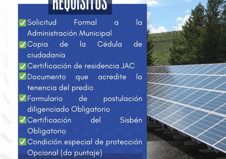 La Administración Municipal, en cabeza del alcalde Camilo Abril, invita a la comunidad a participar en la convocatoria del proyecto “Instalación de Soluciones Individuales Fotovoltaicas (Plantas So...