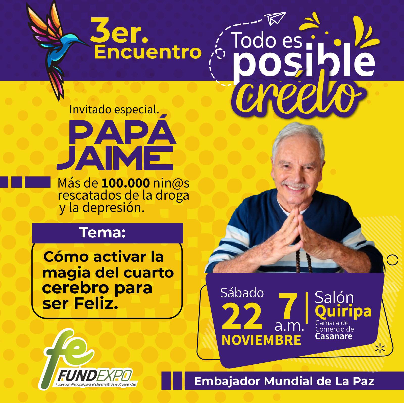 Se trata de Papá Jaime, quien es conocido por rescatar de la calle a más de 100.000 niños y niñas; además de trabajar en temas de depresión, ansiedad, estrés y fata de propósito en la vida.