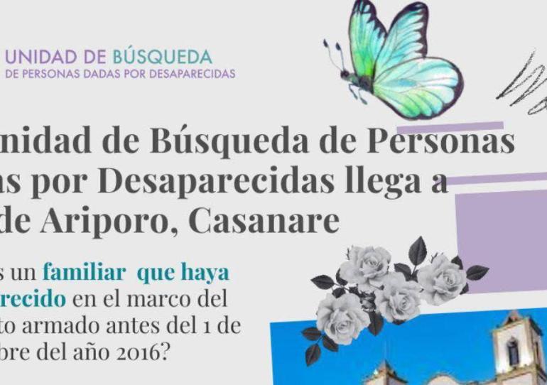 Este 21 y 22 de octubre, la Unidad de Búsqueda de Personas dadas por Desaparecidas (#UBPD), estará en #PazDeAriporo con el objetivo de recolectar información que...
