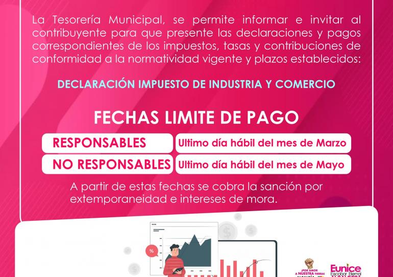 La Tesorería Municipal emitió la circular 303.06-001 donde entrega la información tributaria para pago del impuesto de industria y comercio e impuesto complement...