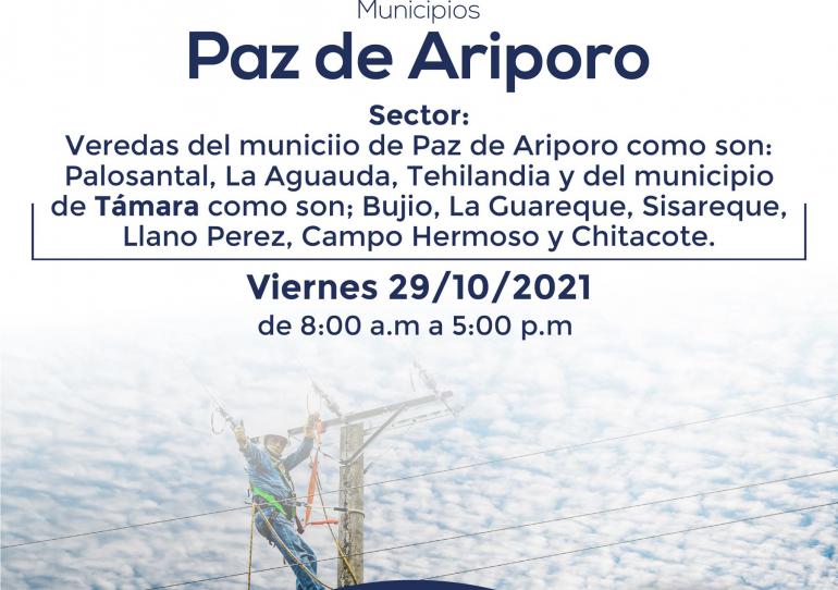 ENERCA, a través de sus redes sociales ha comunicado la suspensión del servicio de energía eléctrica en veredas del municipio de Paz de Ariporo y el municipio de...