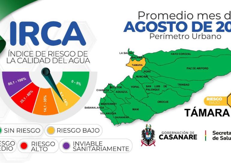 La Secretaría de Salud de Casanare ha publicado los resultados del Índice de Riesgo de la Calidad del Agua, para agosto de 2025, confirmando que el agua en la mayoría de los municipios del departam...