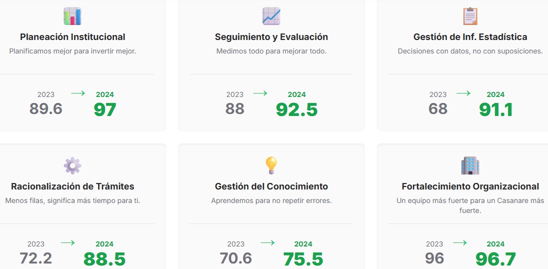 El índice de desempeño institucional evalúa 19 áreas clave, incluyendo la planificación de obras, el manejo del presupuesto, la atención al ciudadano y la simplificación de trámites. En esencia, mide qué tan bien se están utilizando los recursos públicos para mejorar la calidad de vida de los casanareños.