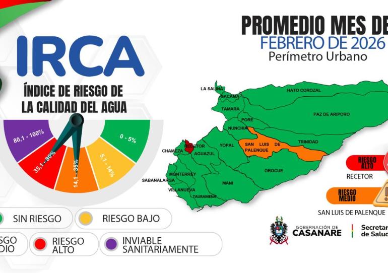 La Secretaría de Salud departamental informa a la comunidad del departamento los resultados del monitoreo del Índice de Riesgo de la Calidad del Agua (IRCA) corr...