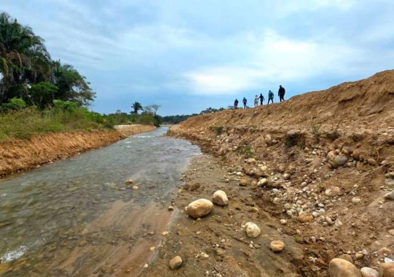La intervención permitió recuperar el tránsito en un sector que había sido socavado por la fuerza del afluente beneficiando a más de 300 familias de las veredas ...