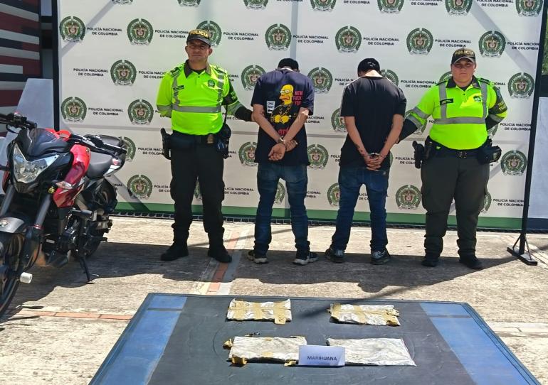 En un operativo de control realizado en el sector de La Guafilla, la Policía de Casanare capturó en flagrancia a dos hombres que transportaban 2.100 gramos de marihuana en una motocicleta.
