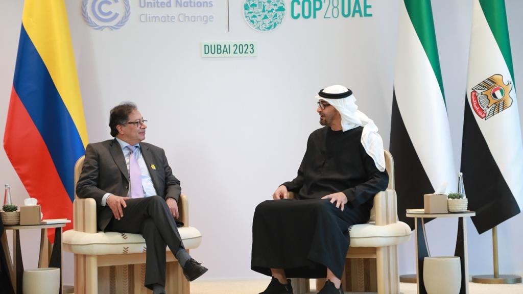 Así lo acordaron los presidentes de Colombia, Gustavo Petro; y de Amiratos Árabes Unidos, Mohamed bin Zayed Al Nahayan, en una reunión bilateral sostenida en la mañana de hoy en el marco en el marco de la Conferencia de las Partes sobre el Cambio Climático 2023 (COP28), que se lleva a cabo en Dubái.