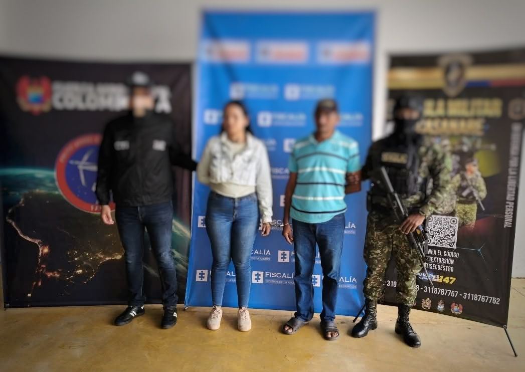 Los dos capturados identificados como José Ildo Jerónimo y Maria Alejandra Avendaño Medina, fueron dejados a disposición de la Fiscalía 5 Gaula de Yopal, por el delito de extorsión.