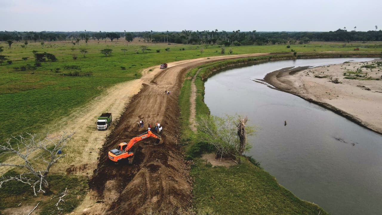 En donde el Pauto se salía de su cauce en Trinidad, se construye un robusto dique de protección