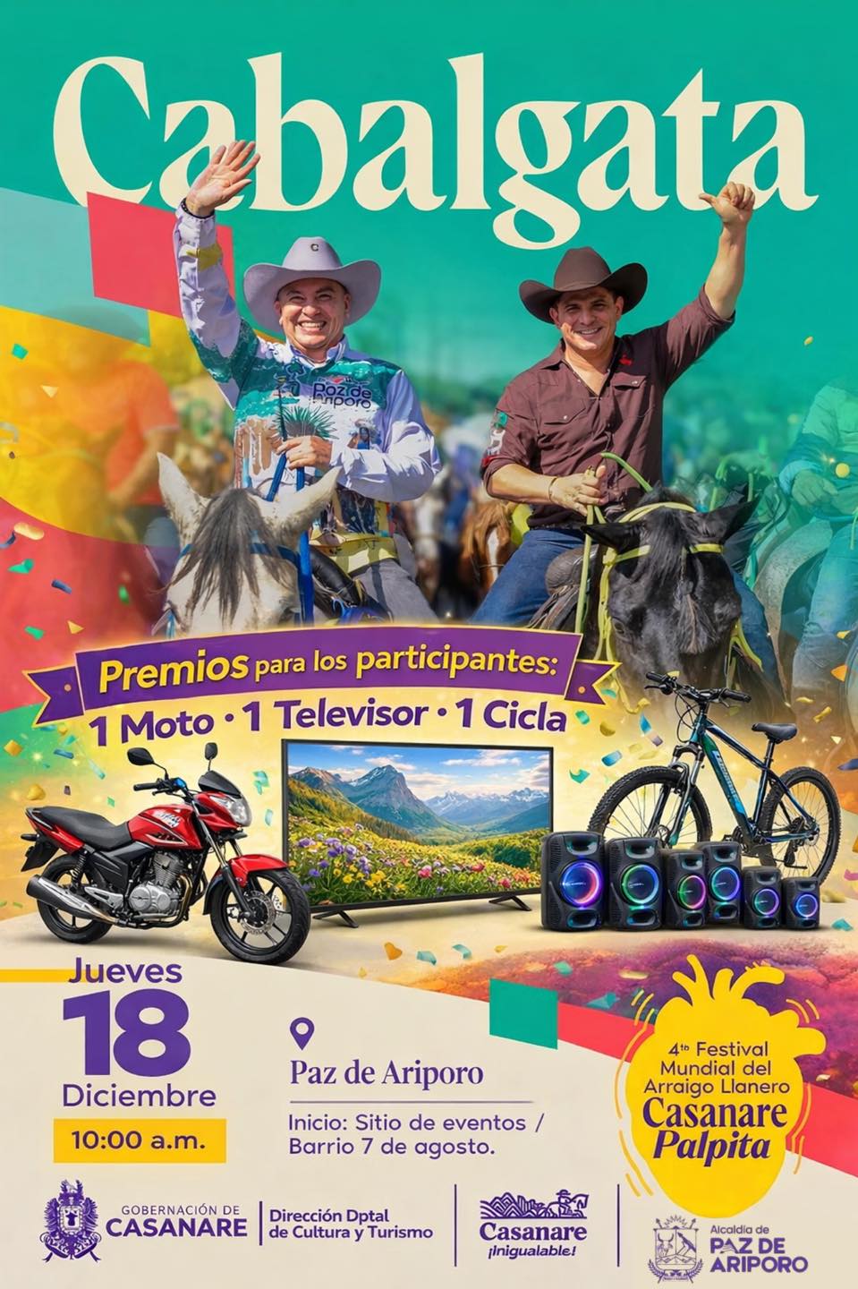 Este 18 de diciembre, desde las 10:00 a.m., Paz de Ariporo será escenario de la Cabalgata Casanare Palpita 2025, un evento que exalta nuestras raíces y promueve la preservación de la cultura llanera.
