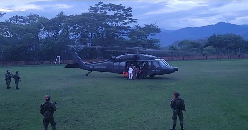 Ante la carencia del personal médico en la zona y la complejidad de las heridas causadas por la mina antipersonal, la comunidad pidió apoyo a las tropas que prestan seguridad en la zona, por lo cual, los socorristas militares le brindaron los primeros auxilios y logran estabilizarlo, mientras, de manera simultánea, se hacían las coordinaciones con el Comando Aéreo de Combate n°2 para facilitar su evacuación.