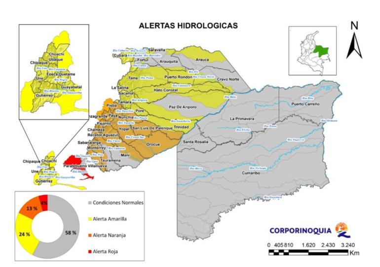 ...El 13% del territorio se encuentra en alerta hidrológica naranja, mientras aumentan las condiciones críticas por deslizamientos con un 9% en nivel rojo y se mantiene baja la incidencia de incen...